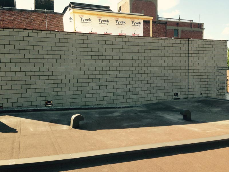 Pose de blocs de béton, Rue des Grandes Prairies à Montréal